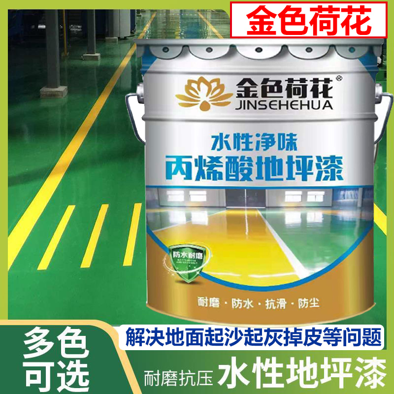 金色荷花水性环保地坪漆 丙烯酸地板漆车位球场水泥漆马路划线漆