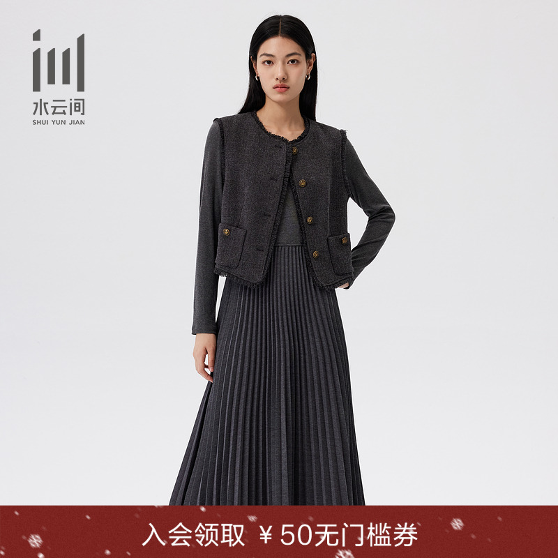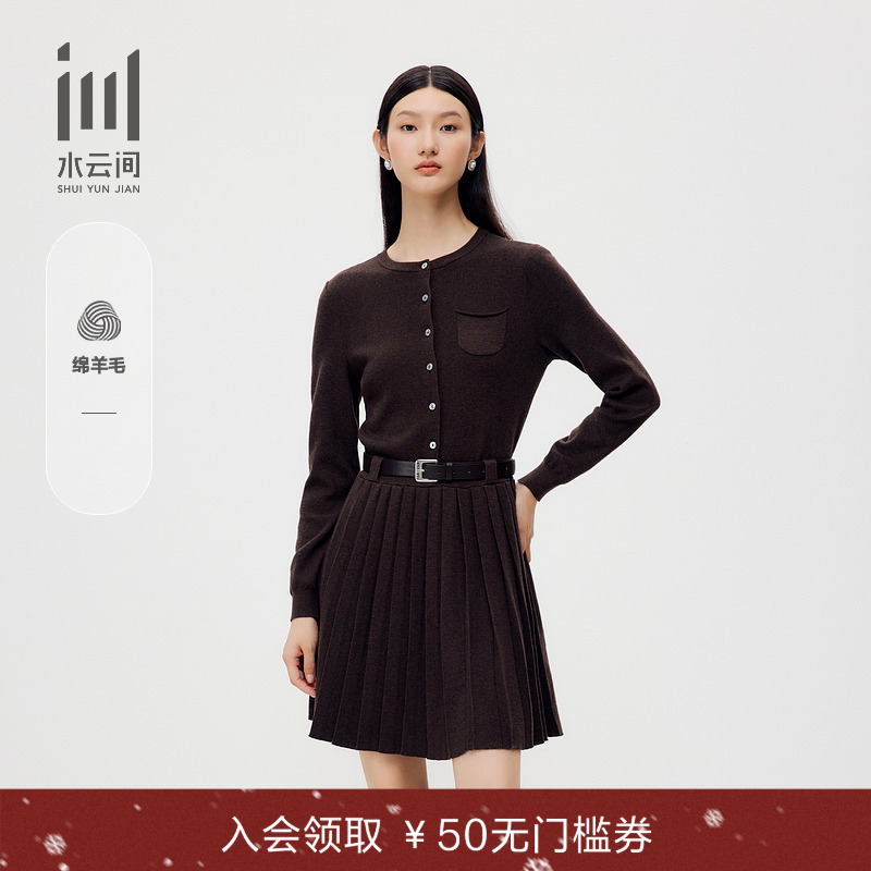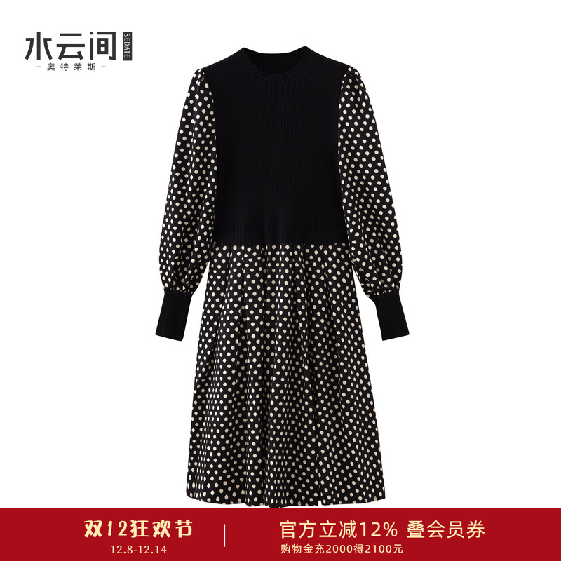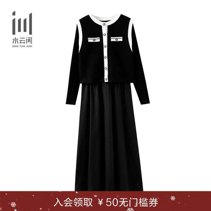 水云间女装 圆领优雅简约老钱风拼接针织连衣裙套装2025冬季新款