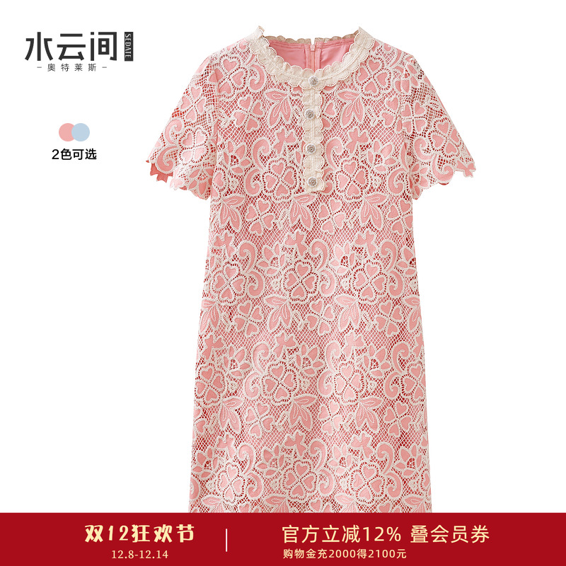 水云间连衣裙小香风浮雕蕾丝H型直筒裙子女短袖优雅气质2025夏款