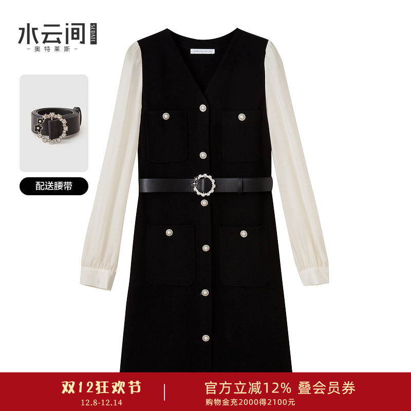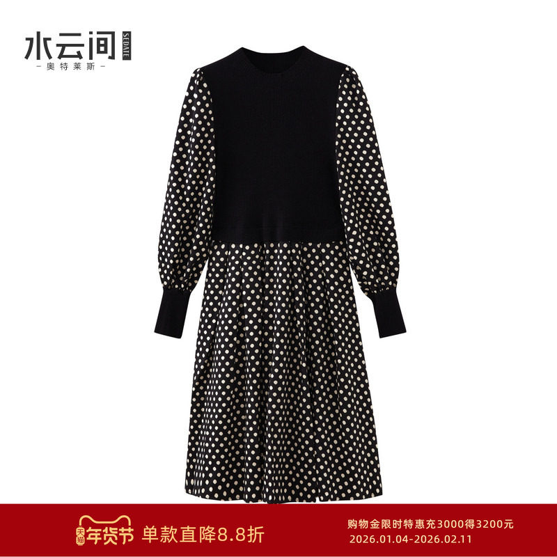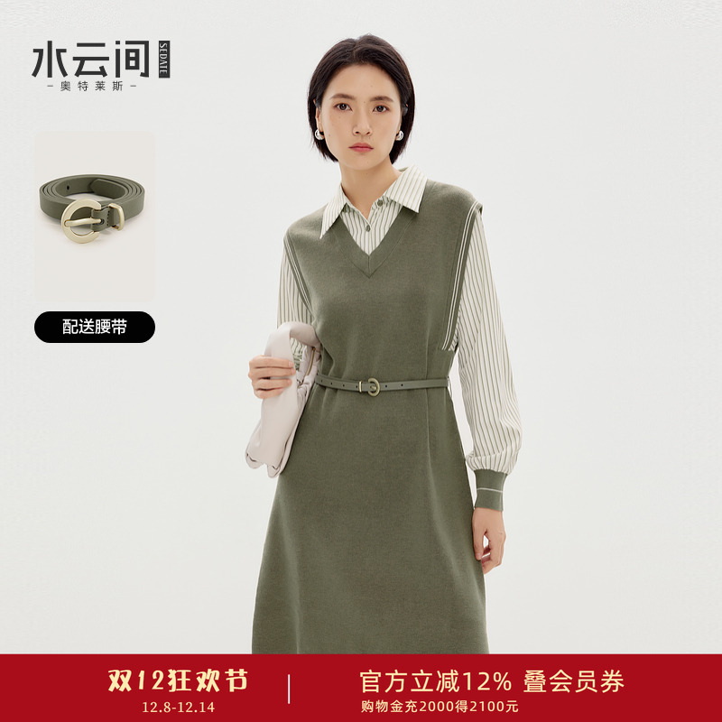 水云间衬衫裙女假两件长袖连衣裙高知分子针织拼接设计感2025秋冬