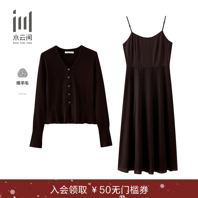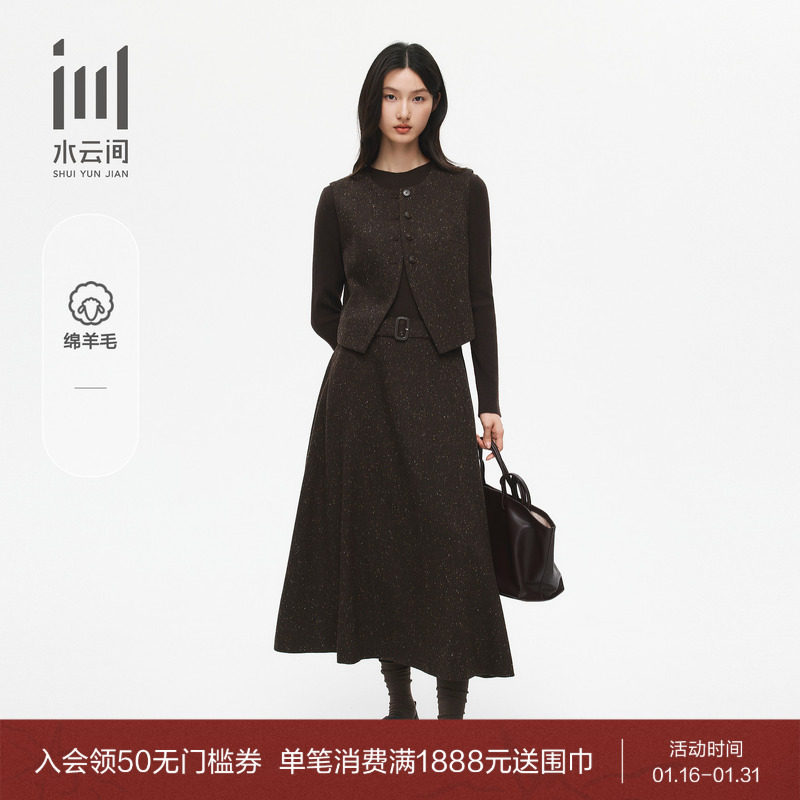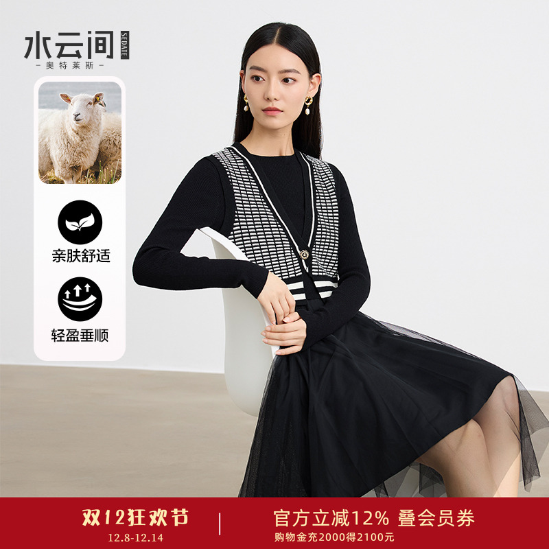 水云间毛针织衫上衣背心连衣裙两件套女套装长袖毛衣收腰裙2025冬