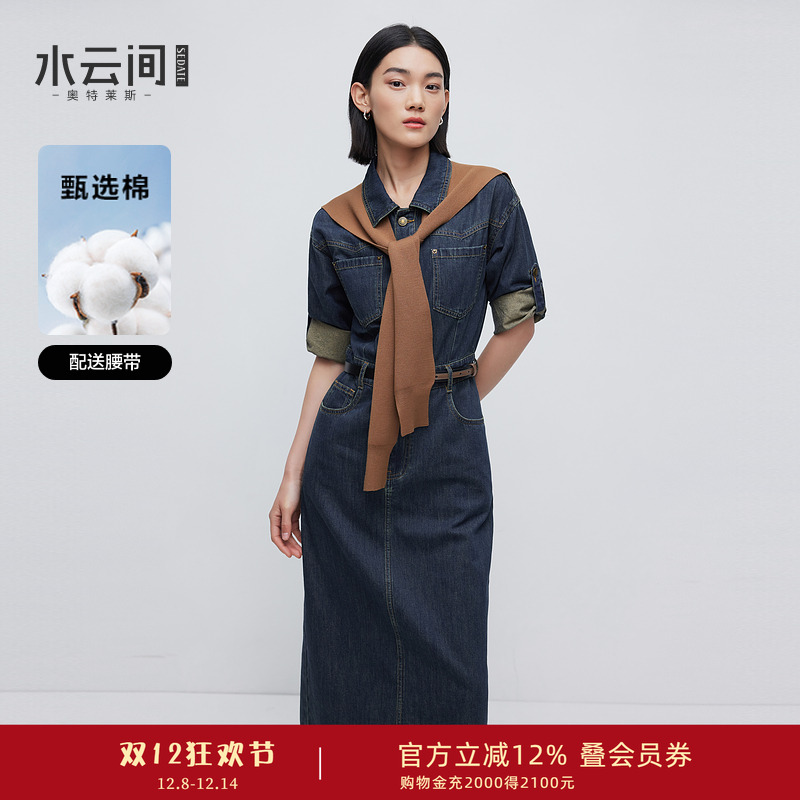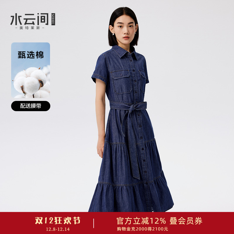水云间复古蓝牛仔连衣裙女polo领短袖裙子纯棉简单大方2025秋新款