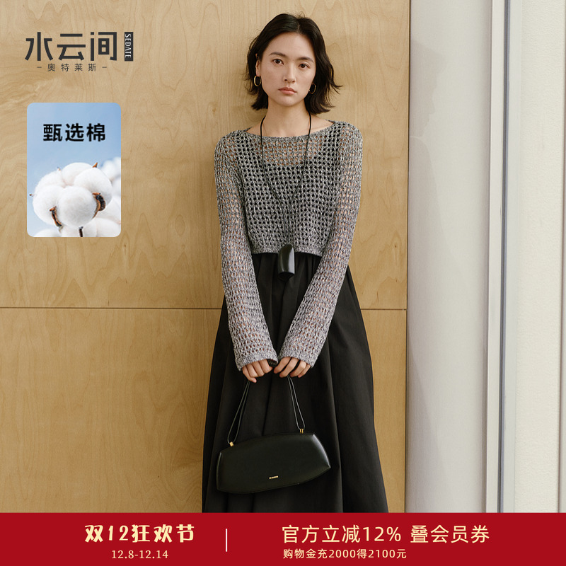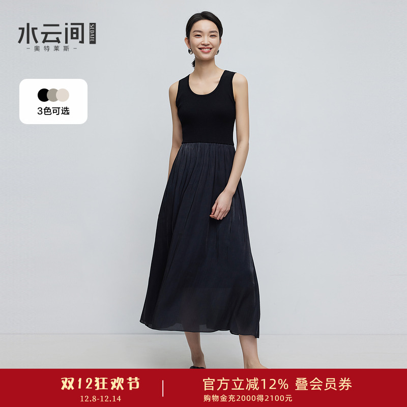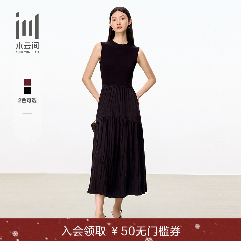 水云间女装 圆领优雅气质修身显瘦拼接针织背心连衣裙2025秋新款