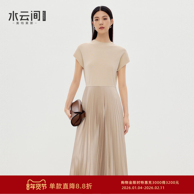 水云间卡其色风琴褶连衣裙女中长款百褶裙厅局风裙子2025秋季新款