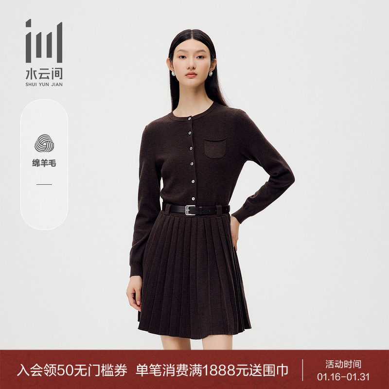 水云间咖色羊毛针织衫连衣裙两件套女a字长裙子内搭毛衣套装2025