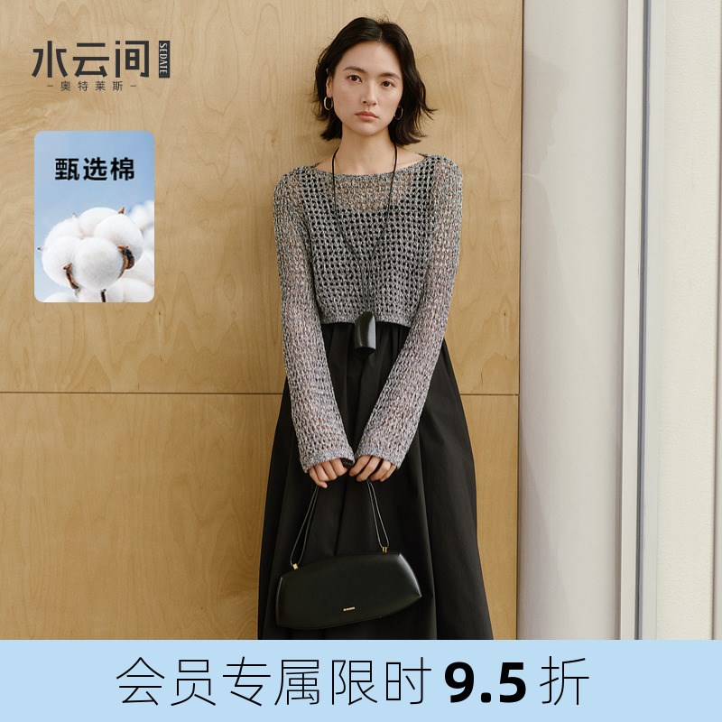 水云间连衣裙镂空针织衫黑色吊带背心长裙女两件套装裙2025春新款