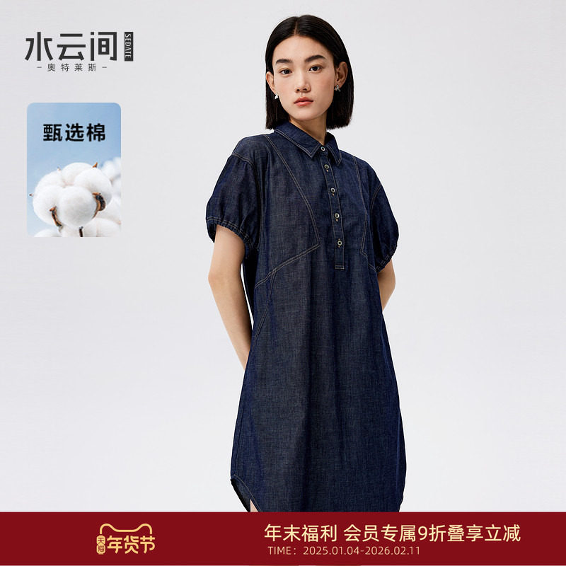 水云间复古蓝牛仔连衣裙女polo领短袖裙子纯棉港风宽松通勤2025秋