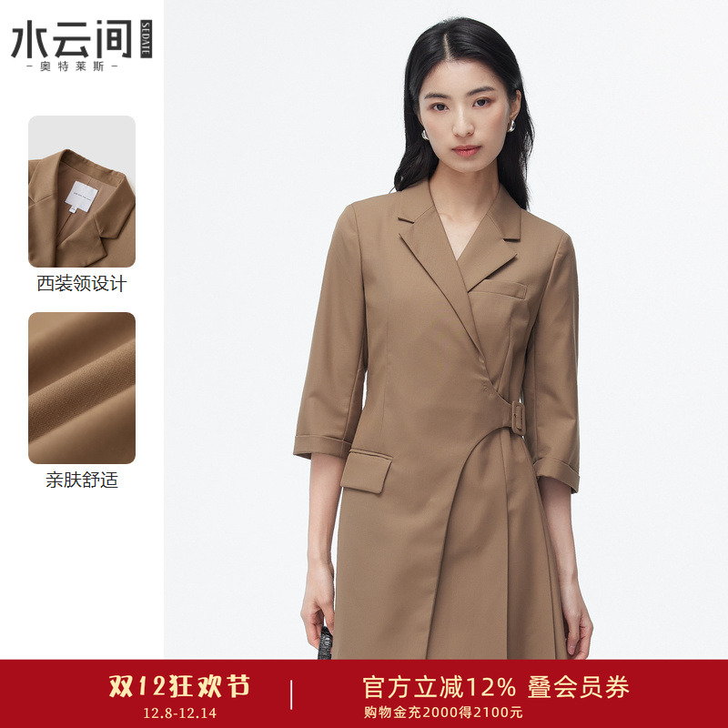 水云间咖色西装裙女2025春夏新款时尚独特设计气质通勤收腰连衣裙