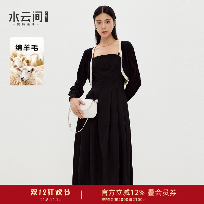 水云间黑色针织吊带连衣裙短款开衫上衣两件套女套装裙子2025秋款