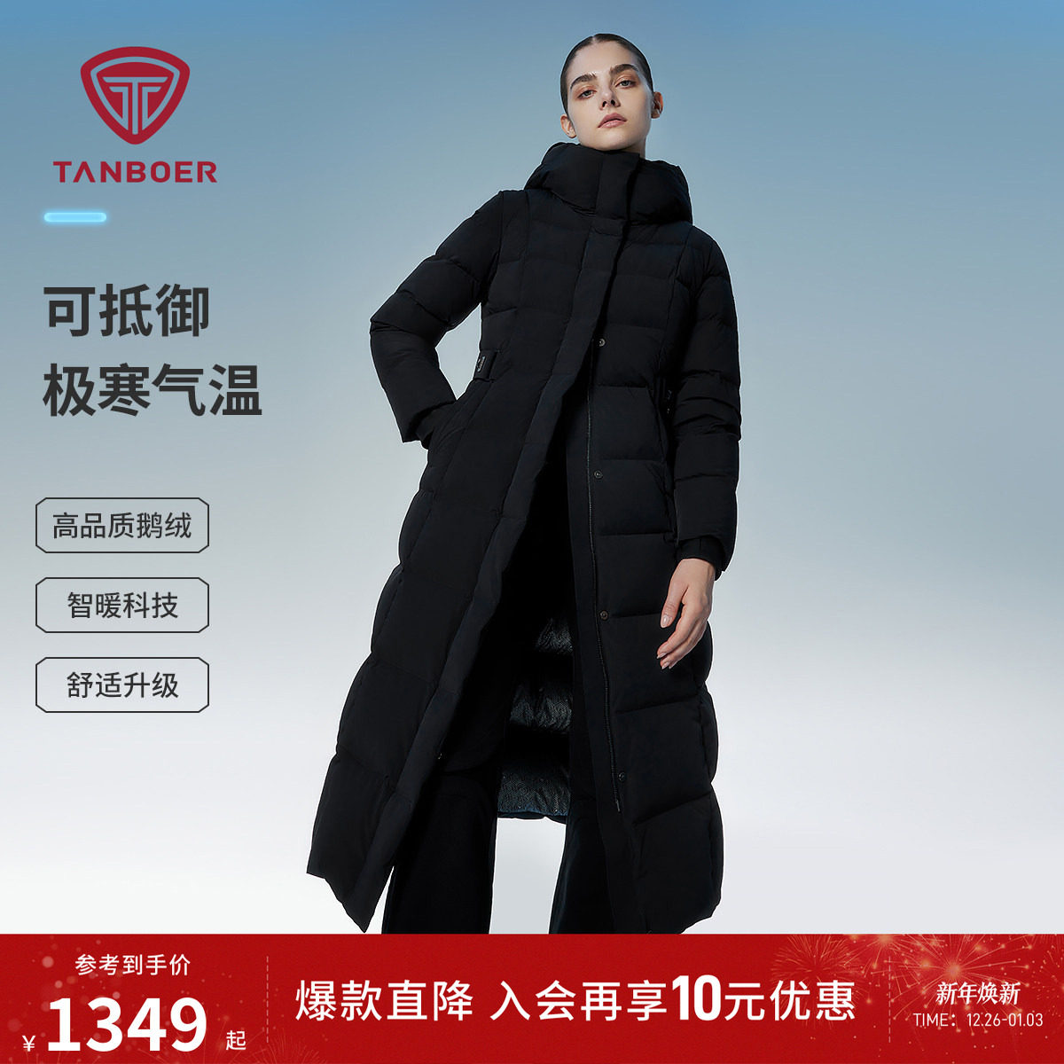 坦博尔冬季极寒鹅绒羽绒服女款长款加厚过膝时尚修身连帽保暖外套