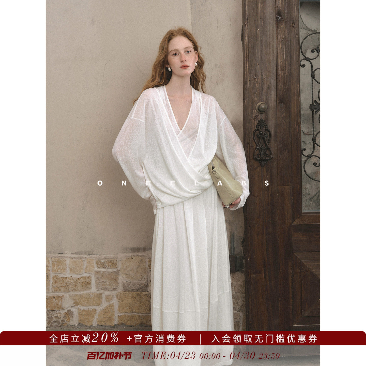 ONEELABS原创品牌 春季简约V领长袖罩衫上衣白色无袖连衣裙套装女