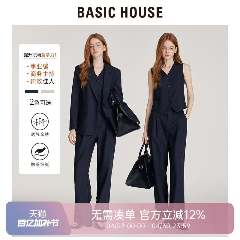 Liixu职业西装套装女春季新款高级感气质廓形西服马甲微喇裤3件套