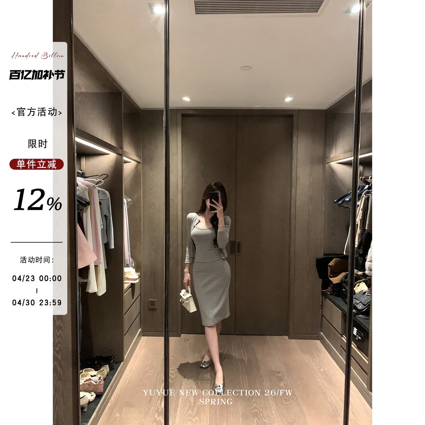 yuyuel 七分袖短款开衫性感吊带背心女春季包臀中长款半裙套装