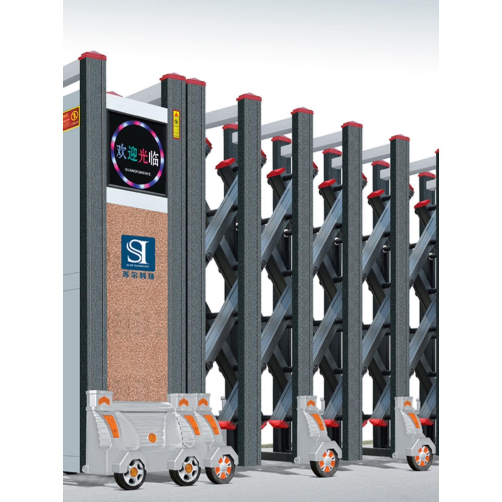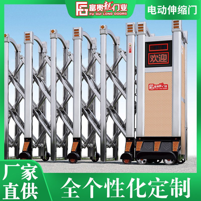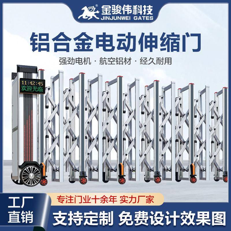 直销电动伸缩门不锈钢铝合金自动折叠收缩屏风遮挡幼儿园学校大门