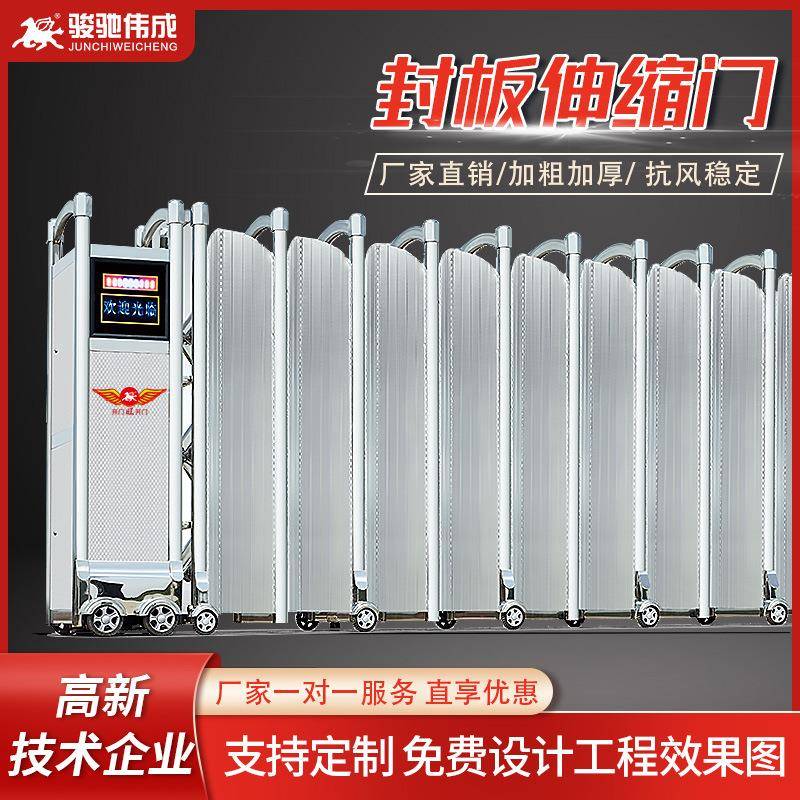 不锈钢封板电动伸缩门学校工厂工地无轨自动伸缩门屏风折叠平移门