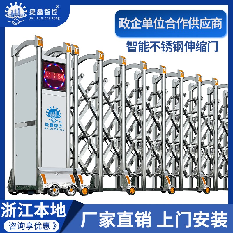 捷鑫电动伸缩门大门学校单位小区工厂不锈钢无轨自动伸缩门封板门