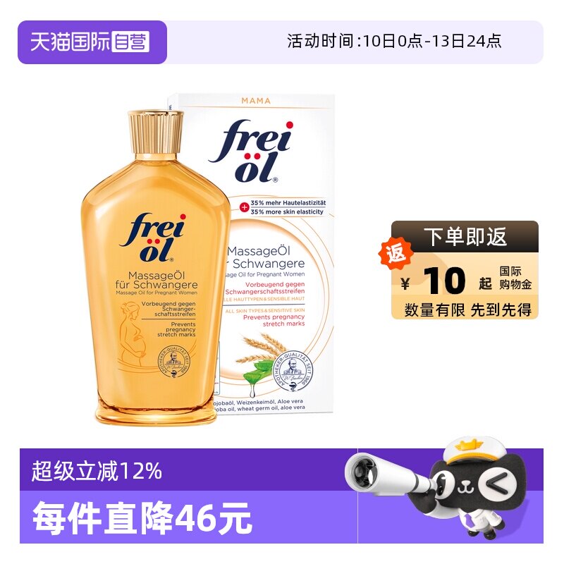 【自营】freiol福来油准孕妇淡化妊娠纹按摩油防护油身体乳200ml