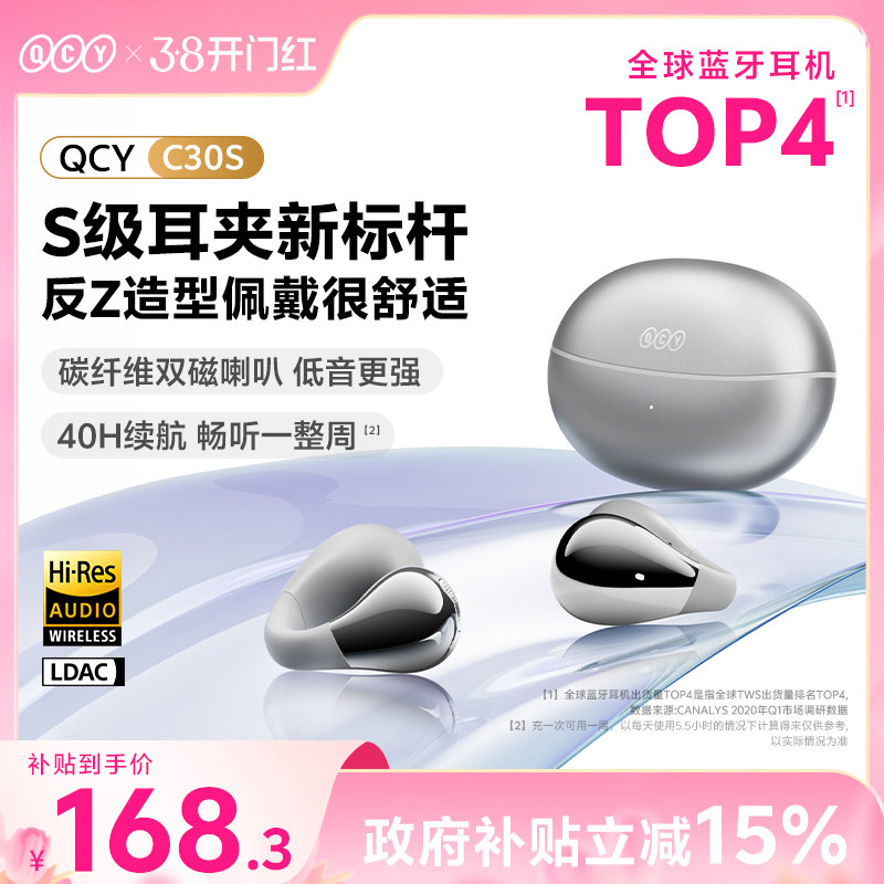 QCY C30S耳夹蓝牙耳机无线开放式新款挂耳气传导运动跑步政府补贴