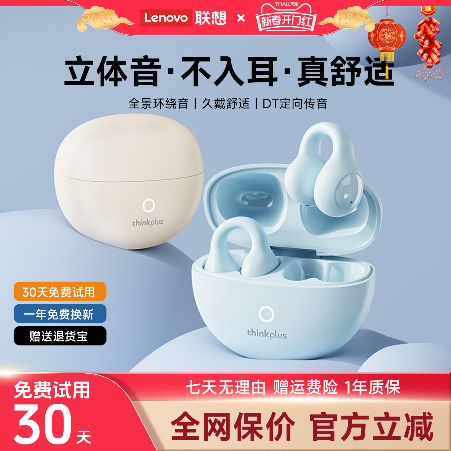 联想蓝牙耳机挂耳式2026新款骨传导不入耳高音质无线运动官方正品
