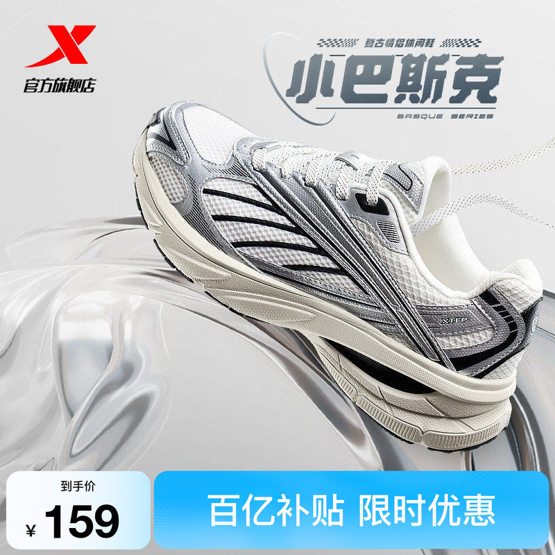 特步小巴斯克丨跑步鞋男鞋网面透气舒适轻便跑鞋女鞋复古运动鞋子