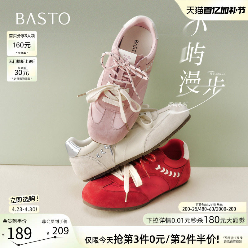 百思图2026夏季新款复古内增高德训鞋跑步鞋运动休闲女鞋WX701AM6