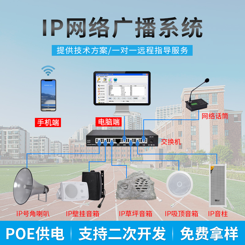 IP网络4G无线远程广播系统音柱号角壁挂吸顶室外防水室内户外校园