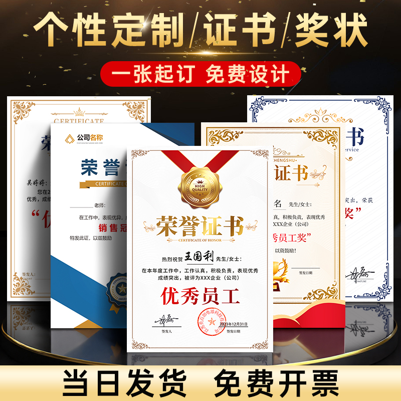 荣誉证书 定制[第1名]