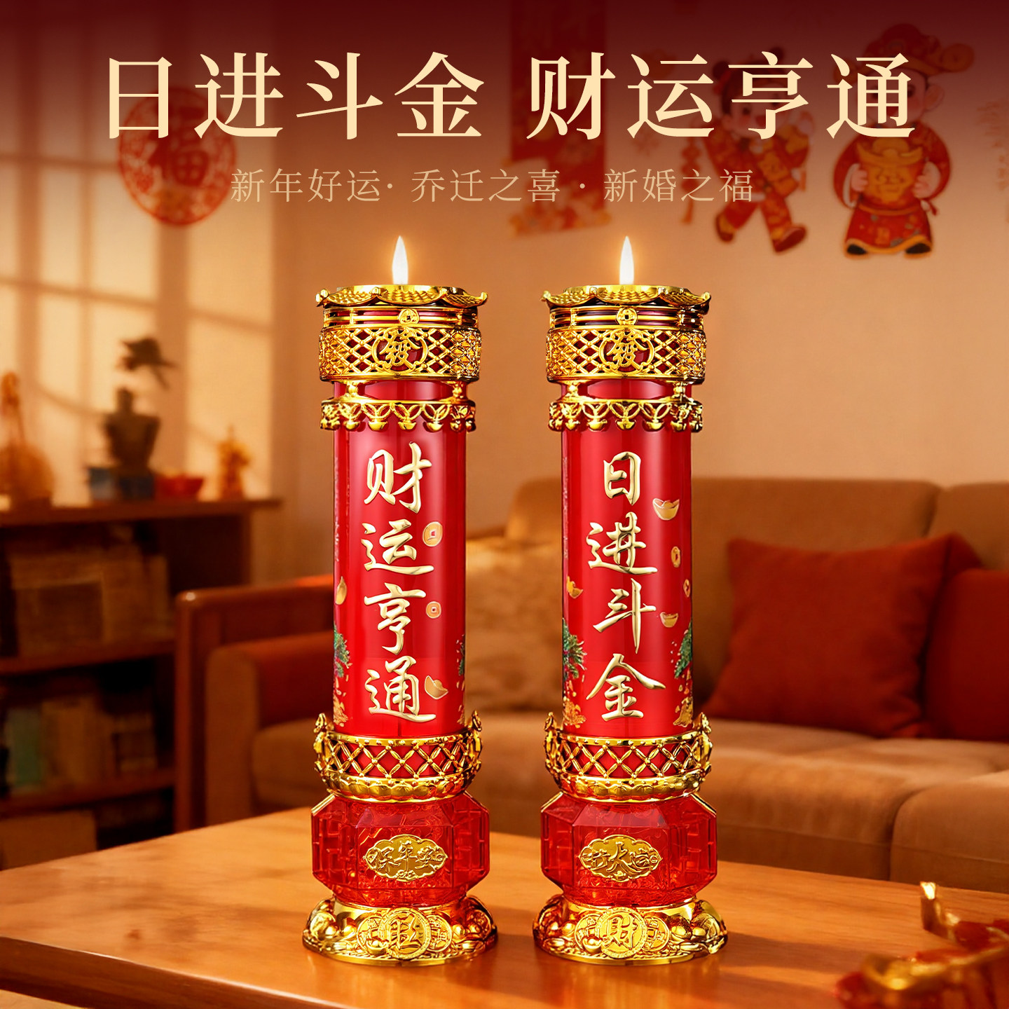 元宝过年水晶蜡烛春节拜神供佛结婚乔迁红色烛供奉家用无烟酥油灯