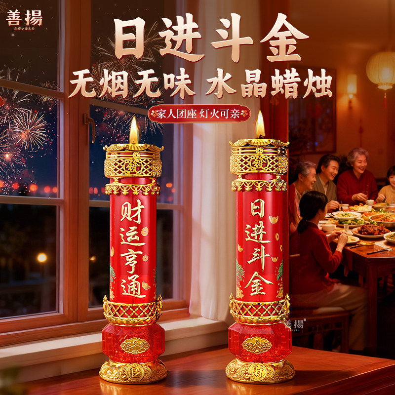 2026春节水晶蜡烛无烟无味新年过年家用防风财神酥油灯供佛长明灯