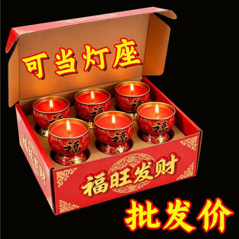【下单立减50】新年福旺蜡烛过年家用小香烛纯植物酥油灯金属座QC