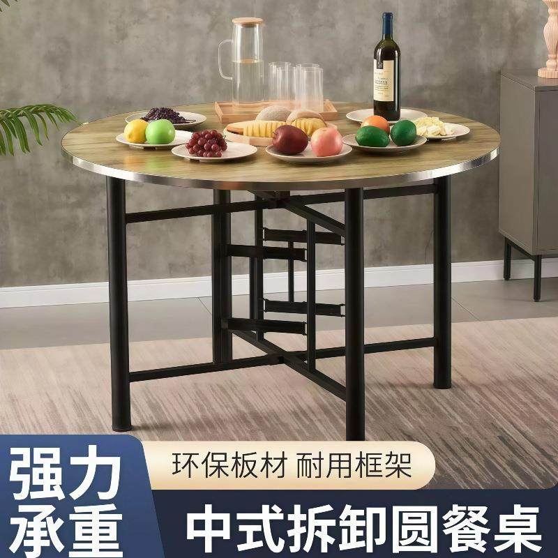 桌子折叠餐桌家用户型木质圆桌出租屋户外便携式折叠桌子吃饭圆桌