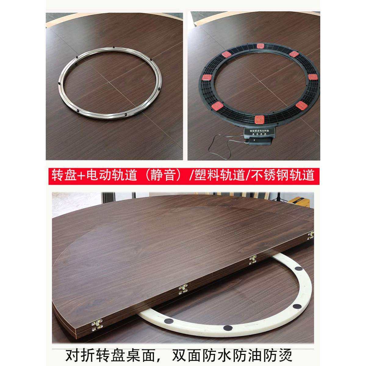 圆餐桌木质桌面转盘折叠木质大桌面配塑料导轨不锈钢导轨电动导轨