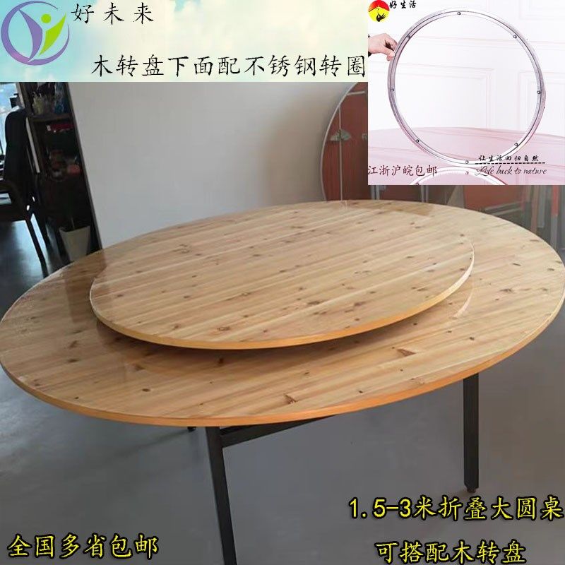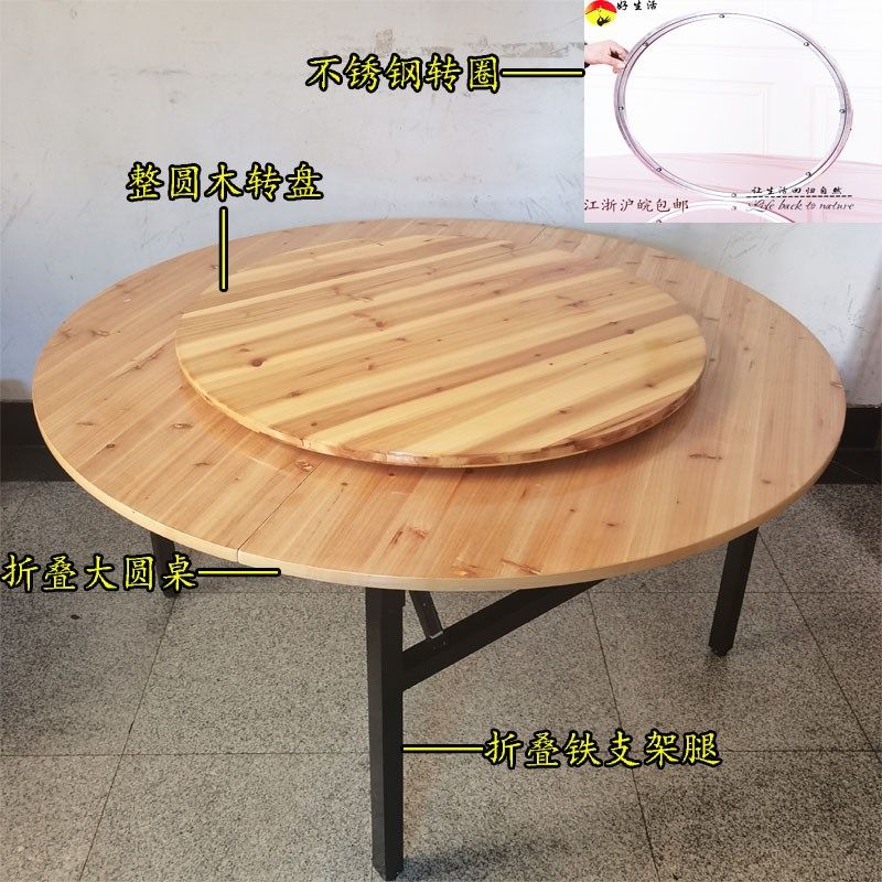 10人15人20人家用酒店杉木折叠大圆桌木转盘圆形实木餐桌木质转盘