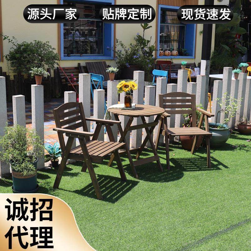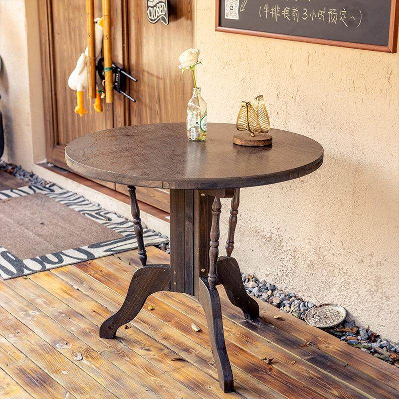 实木圆桌做旧复古圆形饭桌阳台庭院餐桌椅木质法式茶桌折叠咖啡桌