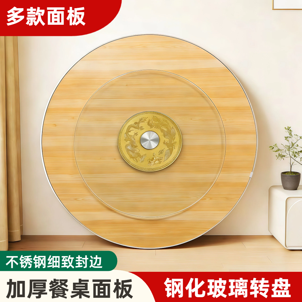折叠圆餐桌木质板式桌面餐桌转盘1.21.51.8转盘塑料不锈钢轨道
