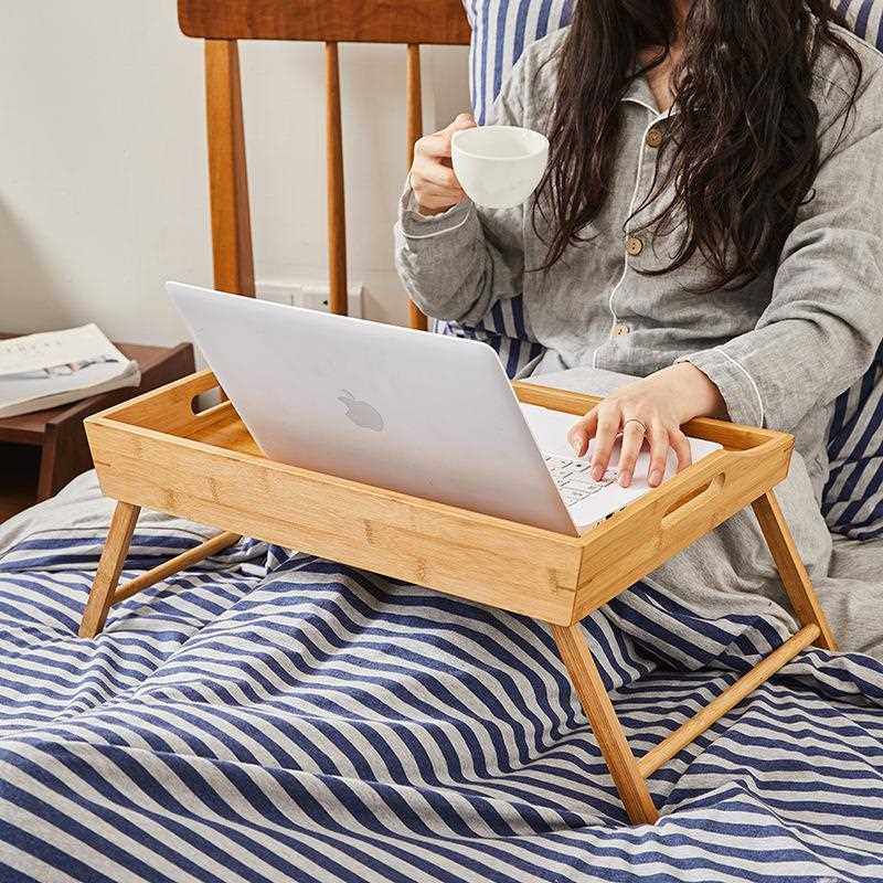 直销新款楠竹木质可折叠床上餐桌速手机槽的竹托盘懒人简易小桌子