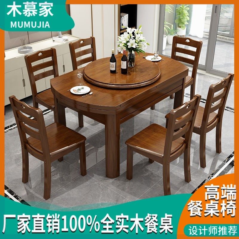 【送木质转盘包安装】实木餐桌椅组合折叠伸缩吃饭桌方圆两用餐桌