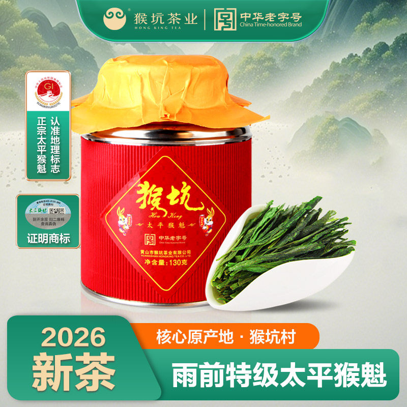 2026新茶预售猴坑太平猴魁特级一等安徽原产地130g罐装春茶绿茶叶