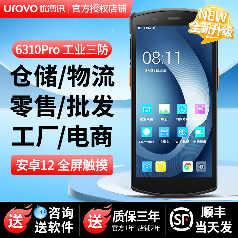 UROVO优博讯i6300A手持终端PDA安卓数据采集器工业手持机MES仓库出入库WMS物流盘点机旺店务通万里牛管家婆
