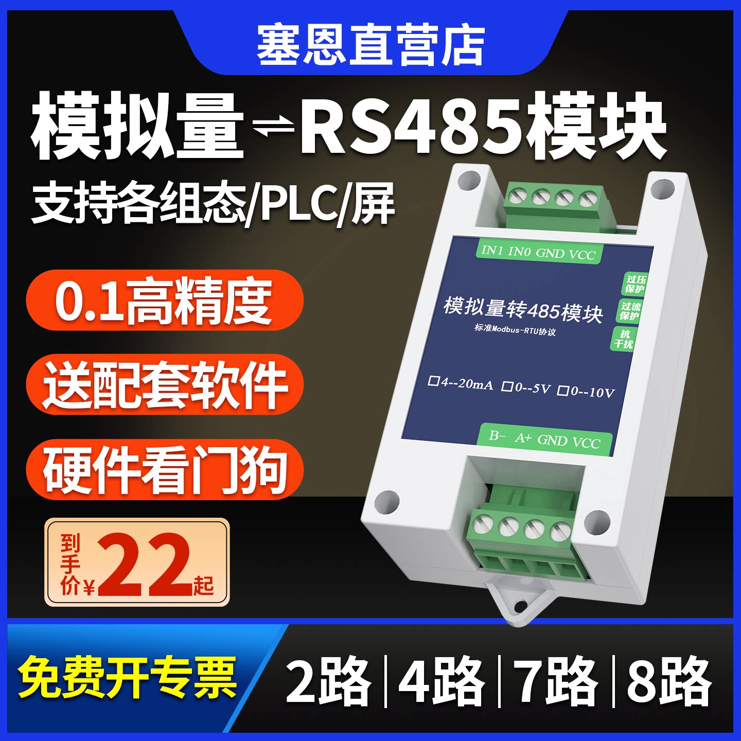 模拟量转RS485模块4-20MA输入Modbus 2/4/8路电压电流数据采集器