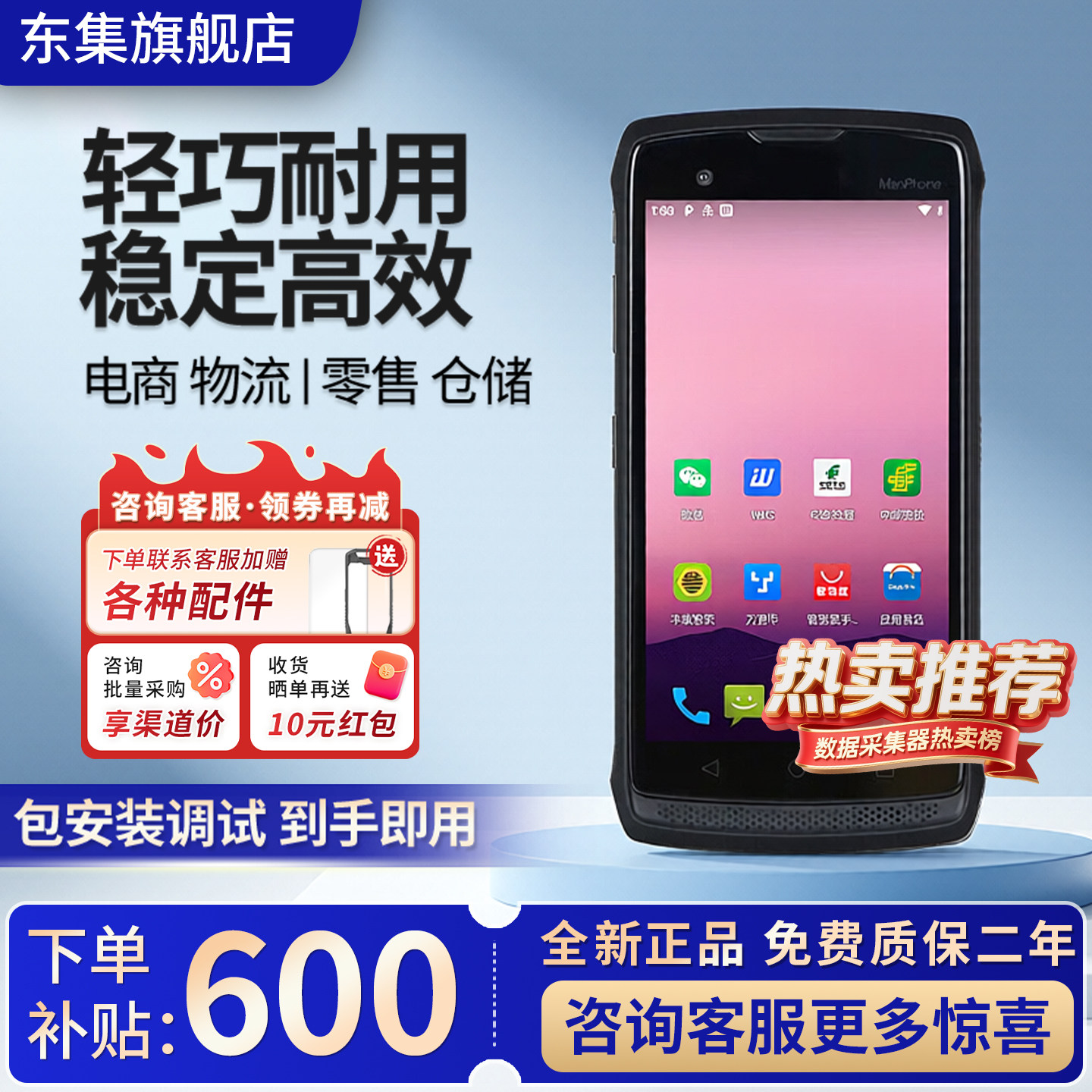 海康威视pda手持终端仓库盘点机出入库MES系统管理扫码枪数据采集器扫描管家婆聚水潭工业邮政固定资产巴枪