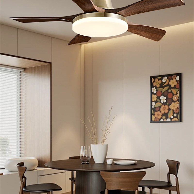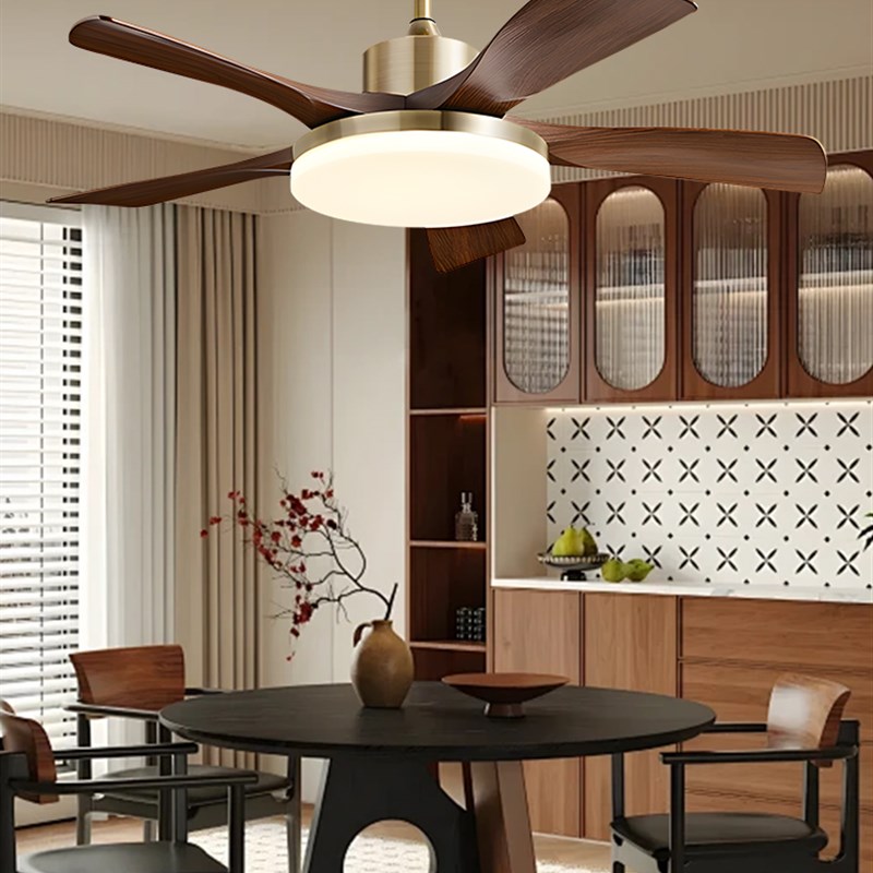 客厅风扇灯2025新款中古风胡桃木色主卧变频吸顶风扇灯餐厅吊扇灯