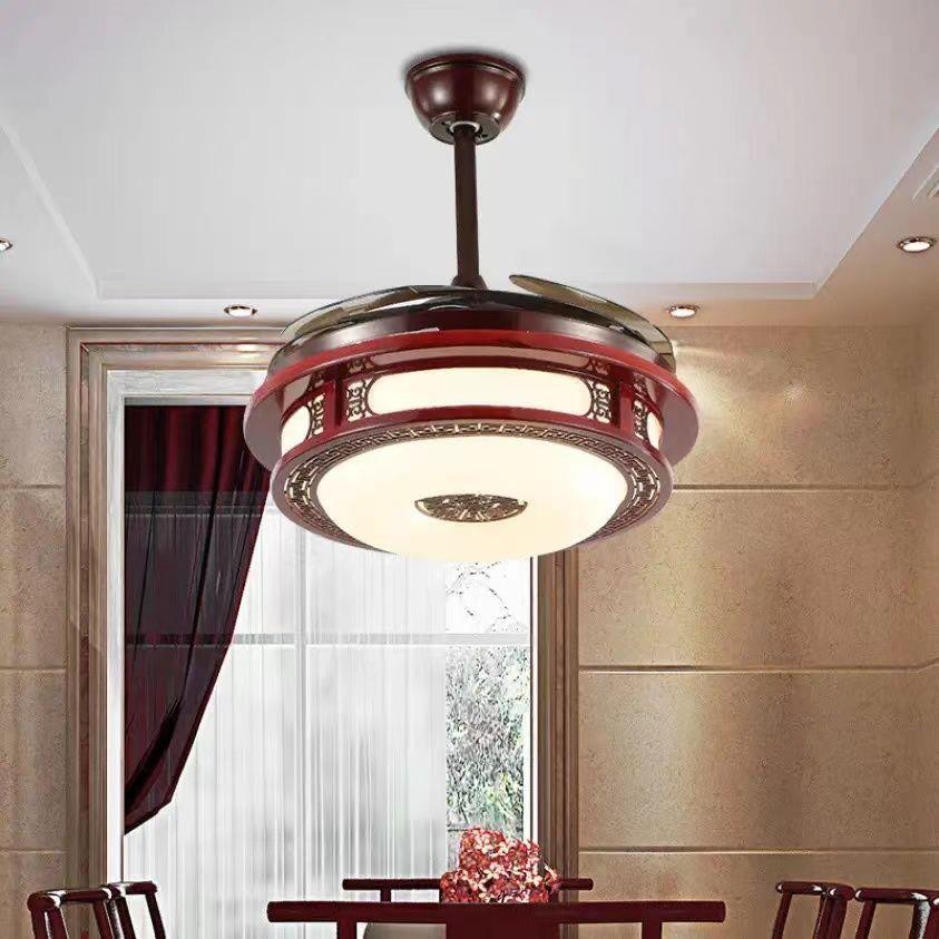 中古风扇灯餐厅吊扇灯2025新款复风扇吊灯古卧室客厅电风扇灯一体