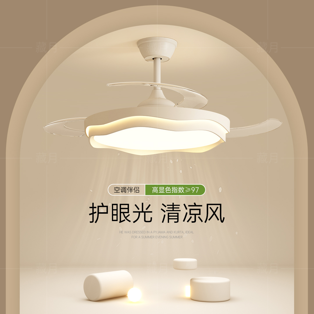隐形风扇灯餐厅吊扇灯新款中古奶静音大风力卧室吸顶电扇灯具油风