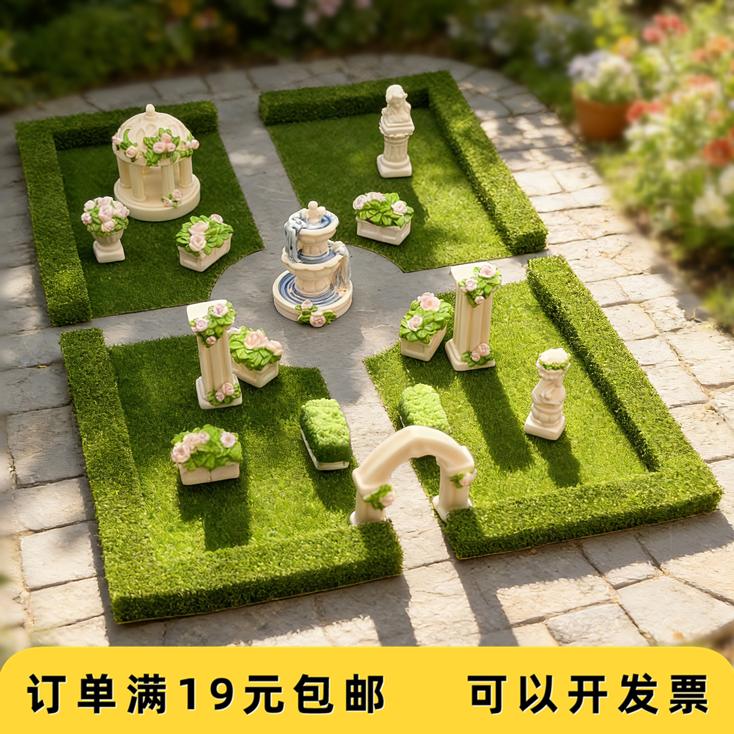 微缩花园摆件欧式庭院仿真草坪罗马柱凉亭喷泉娃娃屋配件拍摄道具