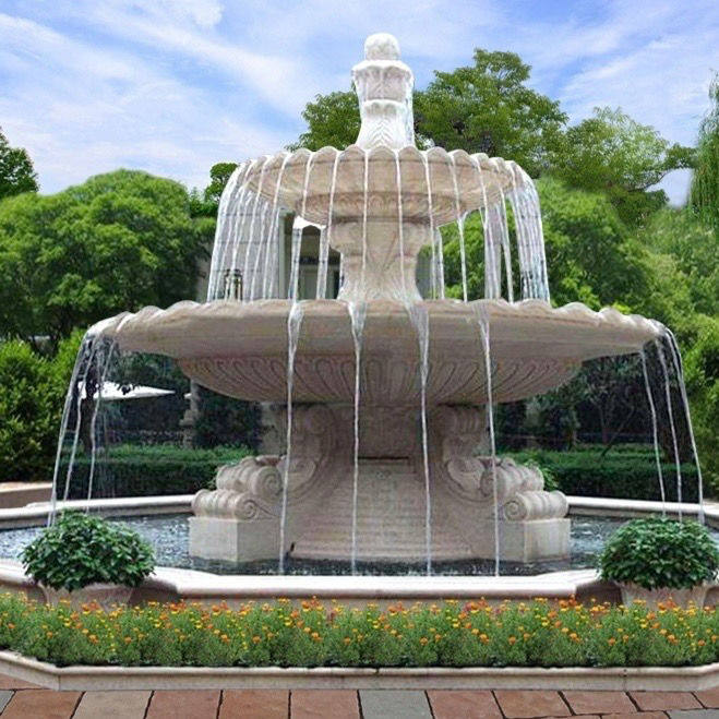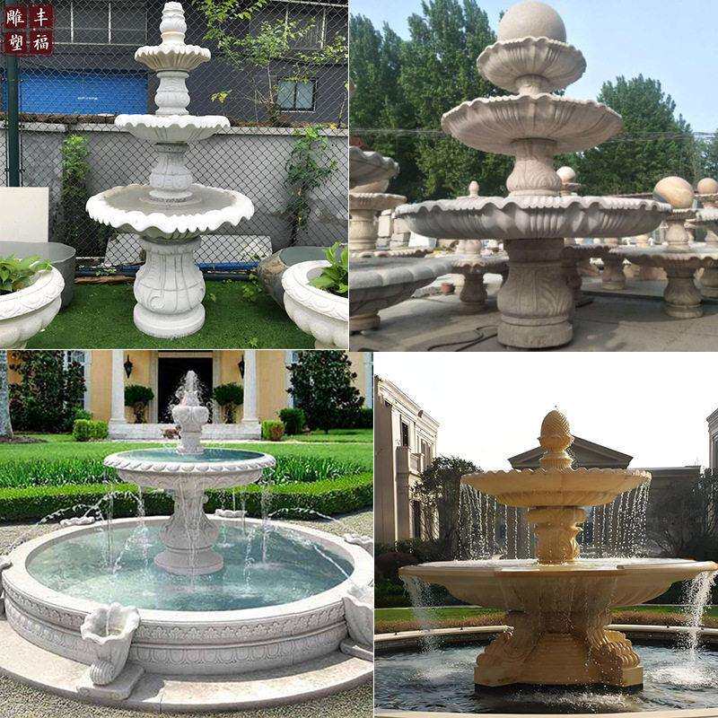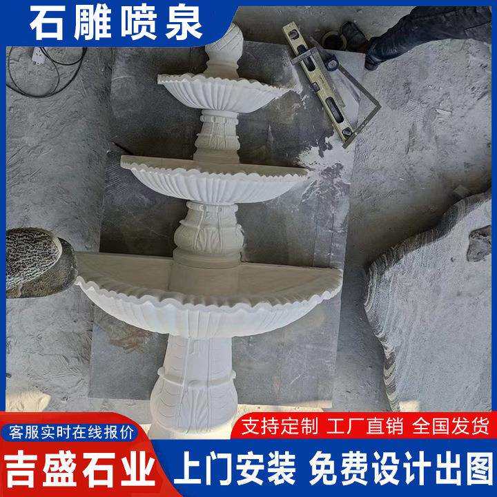 欧式花园三层流水台摆件 庭院鱼池喷泉景观 阳台造景循环流水布置