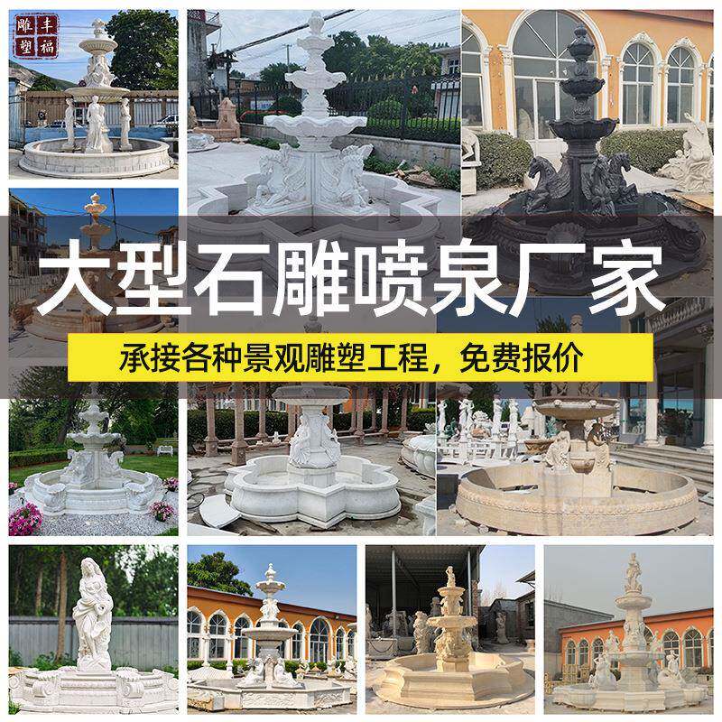 石雕喷泉户外大型欧式大理石流水风水庭院晚霞别墅景Y观摆件圆形