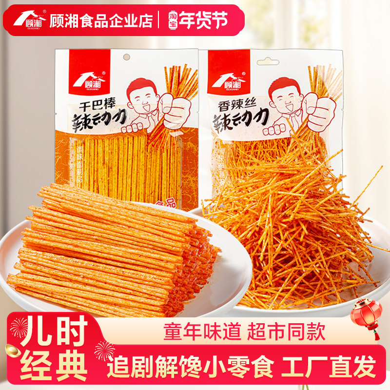 顾湘干巴棒 香辣丝干辣条90后儿时怀旧小辣棒/麻辣细丝爆零食休闲