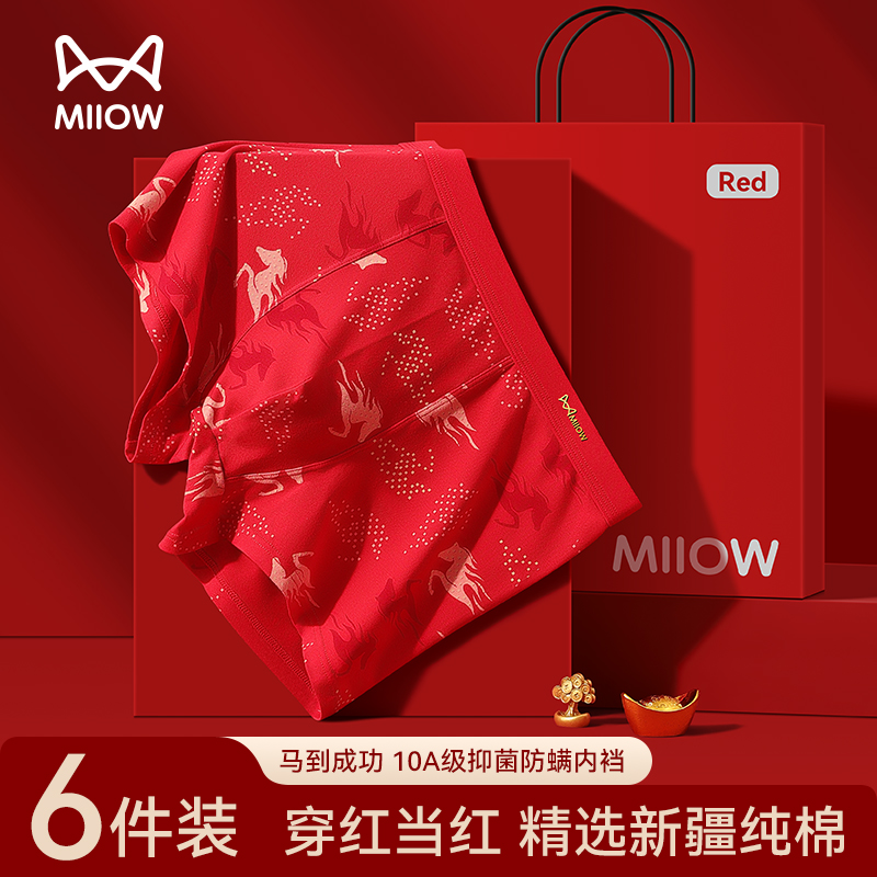 猫人男士本命年内裤男纯棉红色2025新款10A宽松透气抑菌男款内裤