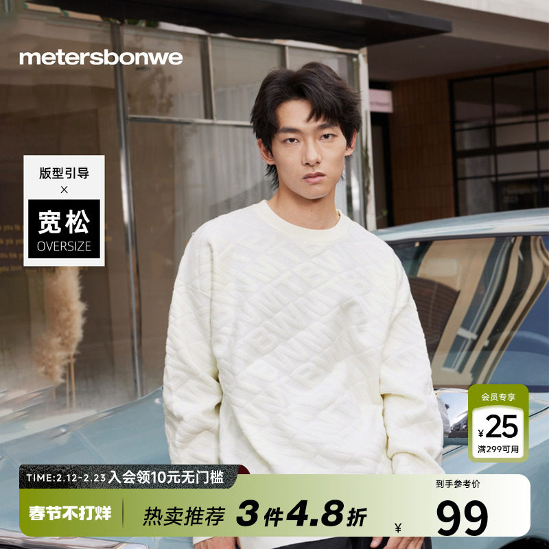 美特斯邦威字母提花毛衣男士休闲舒适时尚百搭套头羊毛衫宽松上衣